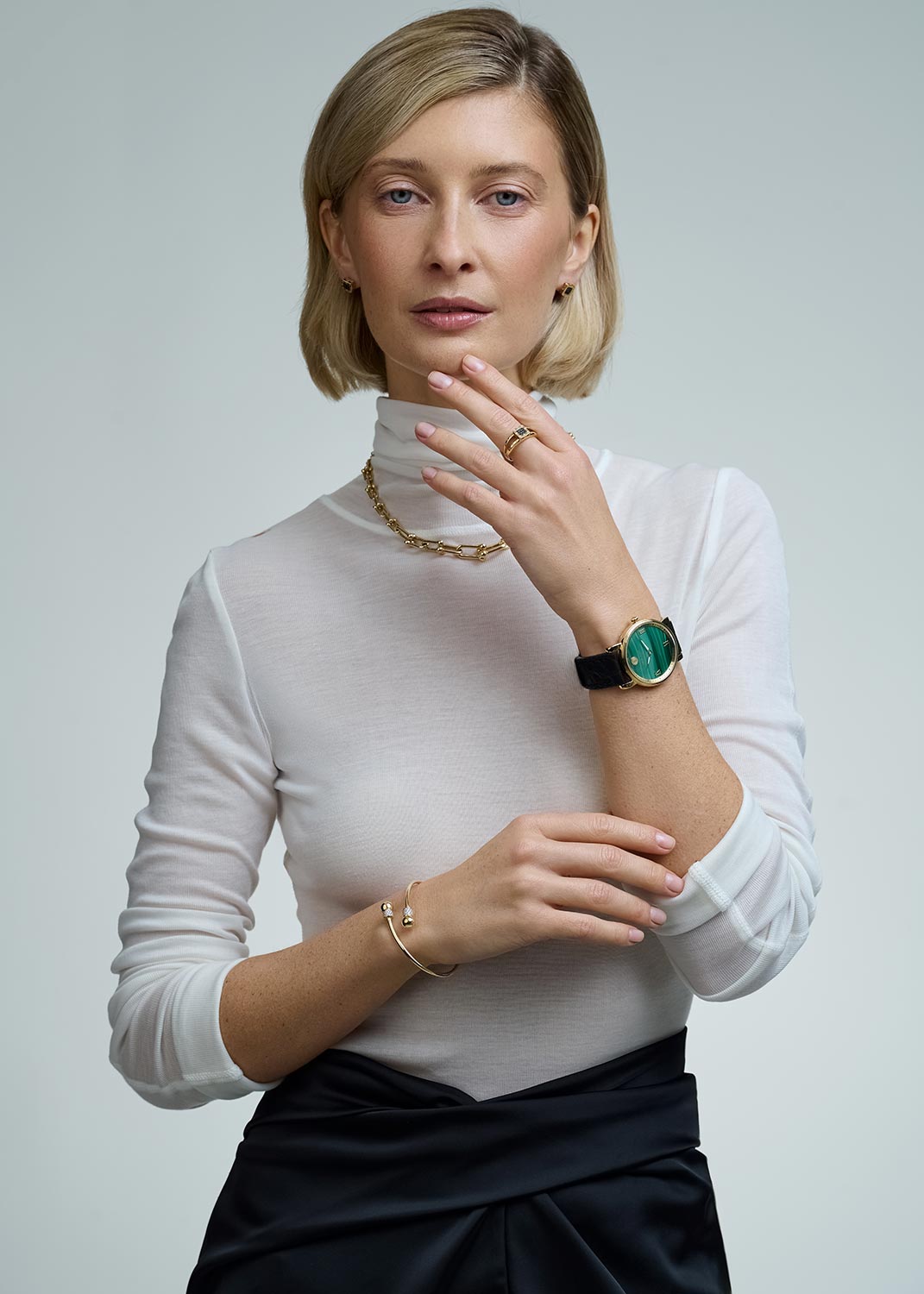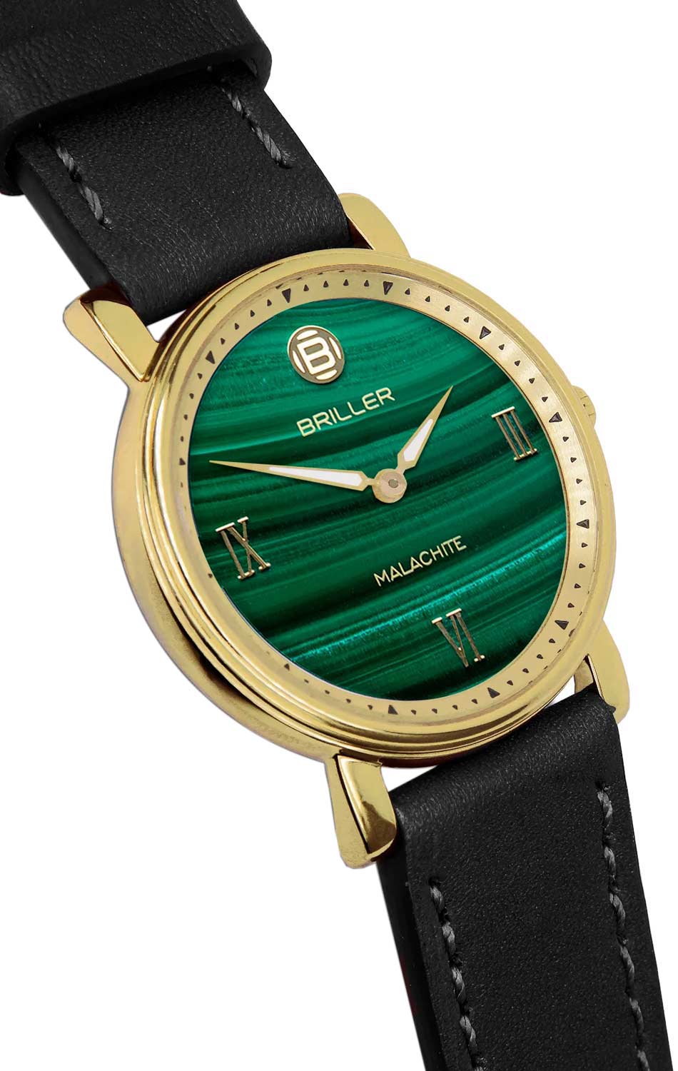 Рифленая заводная головка. Завинчивающаяся задняя крышка. Ремешок из натуральной кожи с классической застежкой.