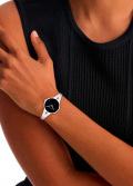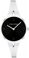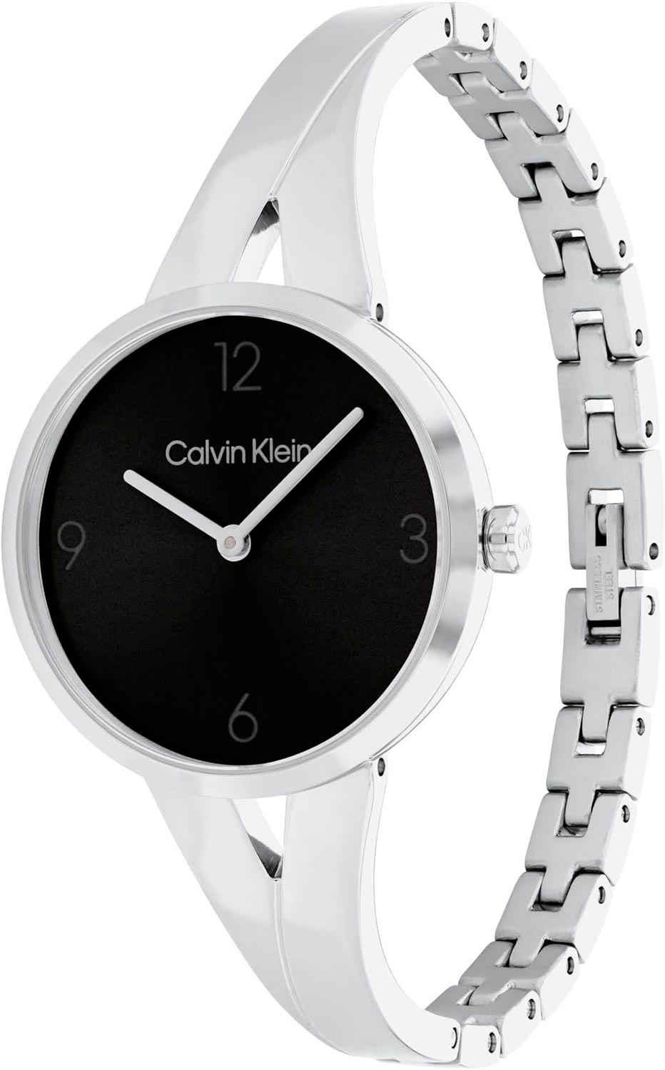 Метки в виде арабских цифр. Скругленные прямоугольные стрелки в стиле Baton. Секундная стрелка отсутствует. Заводная головка украшена логотипом ''CK''. Стальной браслет с ювелирной застежкой, украшенной логотипом бренда.
