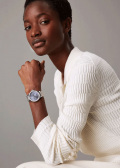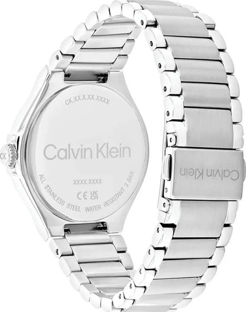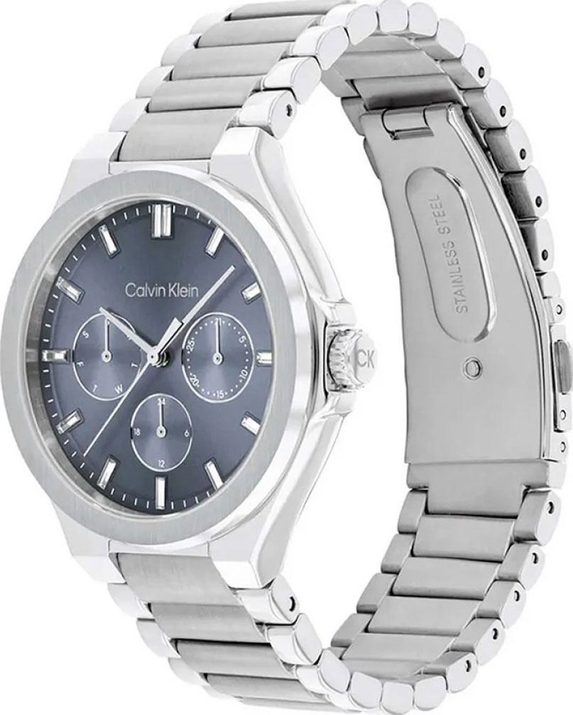 Рифленая заводная головка с защитой. Стальной браслет с раскладывающейся застежкой.
