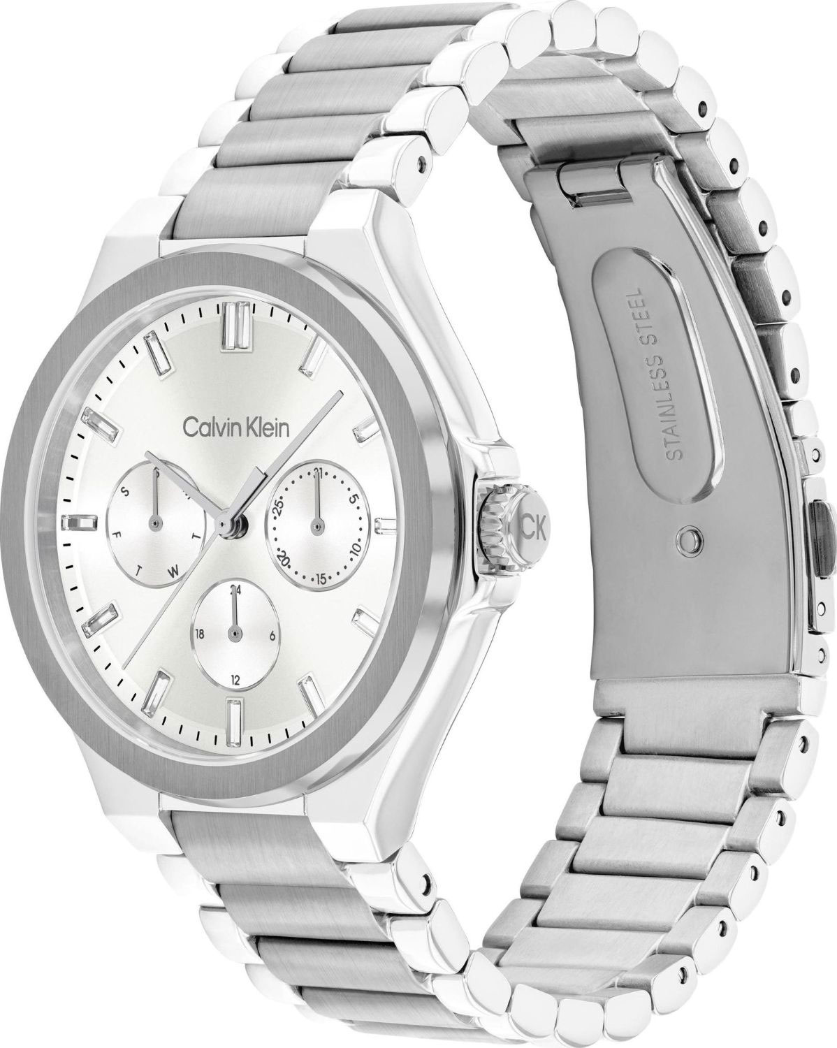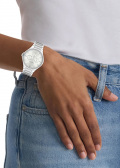 Рифленая заводная головка с защитой. Стальной браслет с раскладывающейся застежкой.