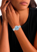 Гладкая заводная головка украшена логотипом ''CK''. Надежный стальной браслет с раскладывающейся застежкой с двумя кнопками и логотипом бренда Calvin Klein.