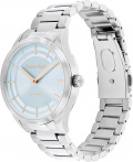 Завинчивающаяся прозрачная задняя крышка. Рифленая заводная головка украшена логотипом ''CK''. Надежный стальной браслет с матовой и полированной отделкой. Раскладывающаяся застежка с двумя кнопками и логотипом бренда Calvin Klein.
