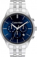 Мужские кварцевые часы. Корпус круглой формы из нержавеющей стали. Циферблат с фирменным логотипом Calvin Klein выполнен по технологии Sunray (солнечные лучи) и защищен минеральным стеклом. Метки в виде штрихов. По краю циферблата нанесена минутная шкала. Прямоугольные стрелки в стиле Baton с люминесцентным покрытием, которое светится в темноте после непродолжительной зарядки на свету. 12-ти и 24-х часовой формат времени. Второй часовой пояс в 24-х часовом формате времени отображается на отдельном циферблате. Окошко даты находится между часовыми отметками 4 и 5 часов. День недели вынесен на отдельный циферблат. Рифленая заводная головка украшена логотипом ''CK''. Надежный стальной браслет с раскладывающейся застежкой с двумя кнопками и логотипом бренда Calvin Klein.