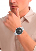 Текстурированный матовый циферблат украшен фирменным логотипом Calvin Klein и защищен минеральным стеклом. Накладные метки в виде арабских цифр и штрихов. Прямоугольные стрелки в стиле Baton.