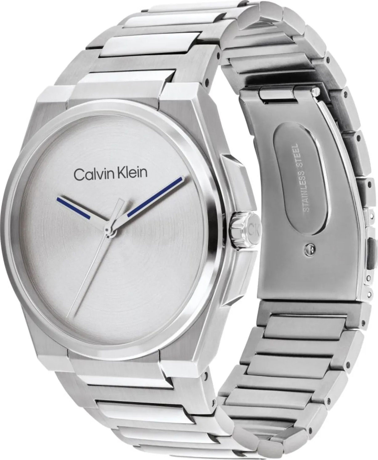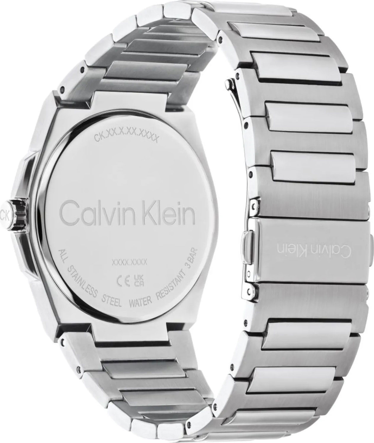 Рифленая заводная головка с защитой. Стальной браслет с раскладывающейся застежкой.