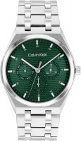 Дата, день недели вынесены на отдельные циферблаты. 12-ти и 24-х часовой формат времени. Рифленая заводная головка украшена логотипом ''CK''. Надежный стальной браслет с матовой и полированной отделкой.