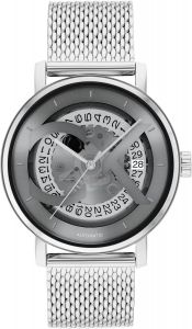 Окошко даты находится в положении 3 часа. Завинчивающаяся прозрачная задняя крышка. Рифленая заводная головка украшена логотипом ''CK''. Надежный стальной браслет с матовой и полированной отделкой. Раскладывающаяся застежка с двумя кнопками и логотипом бренда Calvin Klein.