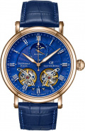 Murg. Часы с круглым стальным корпусом. В механизме 45 камней. Сквозь прозрачные окошки на циферблате можно наблюдать за работой механизма часов. Число и фаза Луны вынесены на отдельный циферблат. Метки в виде римских цифр. Прозрачная задняя крышка. Ремешок с классической застежкой.