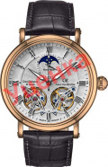 Murg. Мужские механические часы. Круглый стальной корпус. В механизме 45 камней. Сквозь прозрачные окошки на циферблате можно наблюдать за работой механизма часов. День недели и фаза Луны вынесены на отдельный циферблат. Метки в виде римских цифр. Острые стрелки в стиле Alpha.