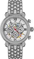 Листовидные стрелки в стиле Feuille с люминесцентным покрытием, которое светится в темноте после непродолжительной зарядки на свету. Безель, рифленая заводная головка и функциональные кнопки украшены кристаллами. Прозрачная задняя крышка. Надежный стальной браслет с раскладывающейся застежкой.