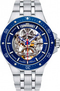 Стрелки в виде стрелы (Arrow). Граненая заводная головка с защитой. Задняя крышка из сапфирового стекла. Надежный стальной браслет с раскладывающейся застежкой.