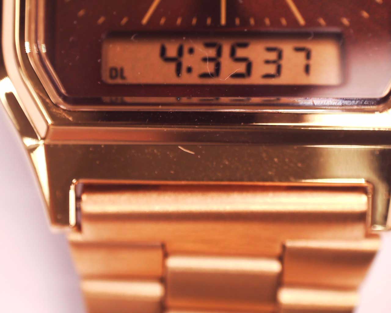 Vintage. Унисекс часы. Второй часовой пояс. 12-ти и 24-х часовой формат времени. Секундомер с точностью показаний 1/100с и временем измерения 1ч. SPLIT-хронограф. Циферблат с метками в виде штрихов выполнен по технологии Sunray (солнечные лучи). Батарея рассчитана на 3 года. Браслет с регулируемой застежкой.