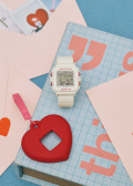 Батарея рассчитана на 3 года. Стальная задняя крышка крепится на 4-х винтах. Ремешок с классической застежкой. В комплекте специальный держатель в виде сердца, в который без дополнительных инструментов вы сможете вставить часы и получить стильный брелок.