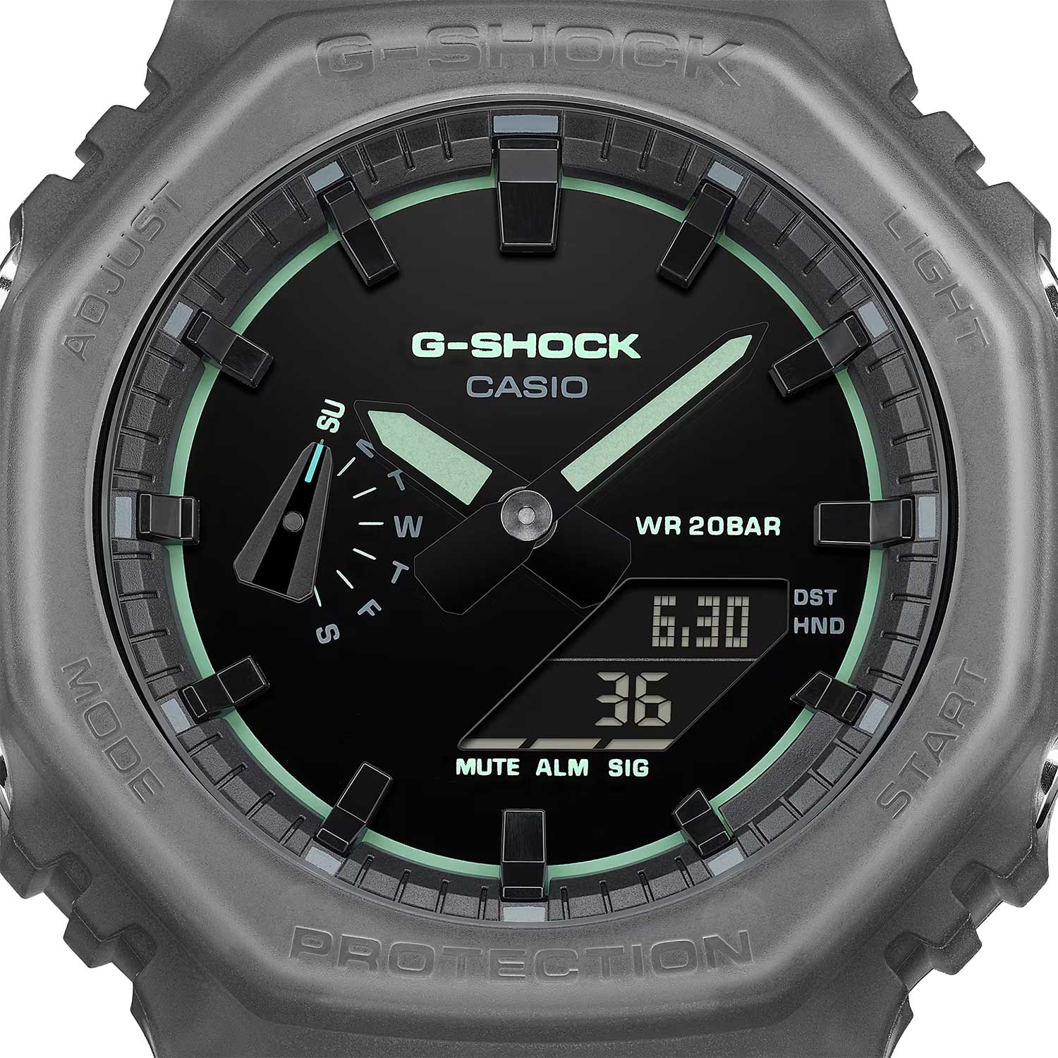 Корпус GA-2100 не только гармоничен и красив, но и невероятно надежен. За уникальную прочность отвечает особая конструкция и защита Carbon Core Guard
