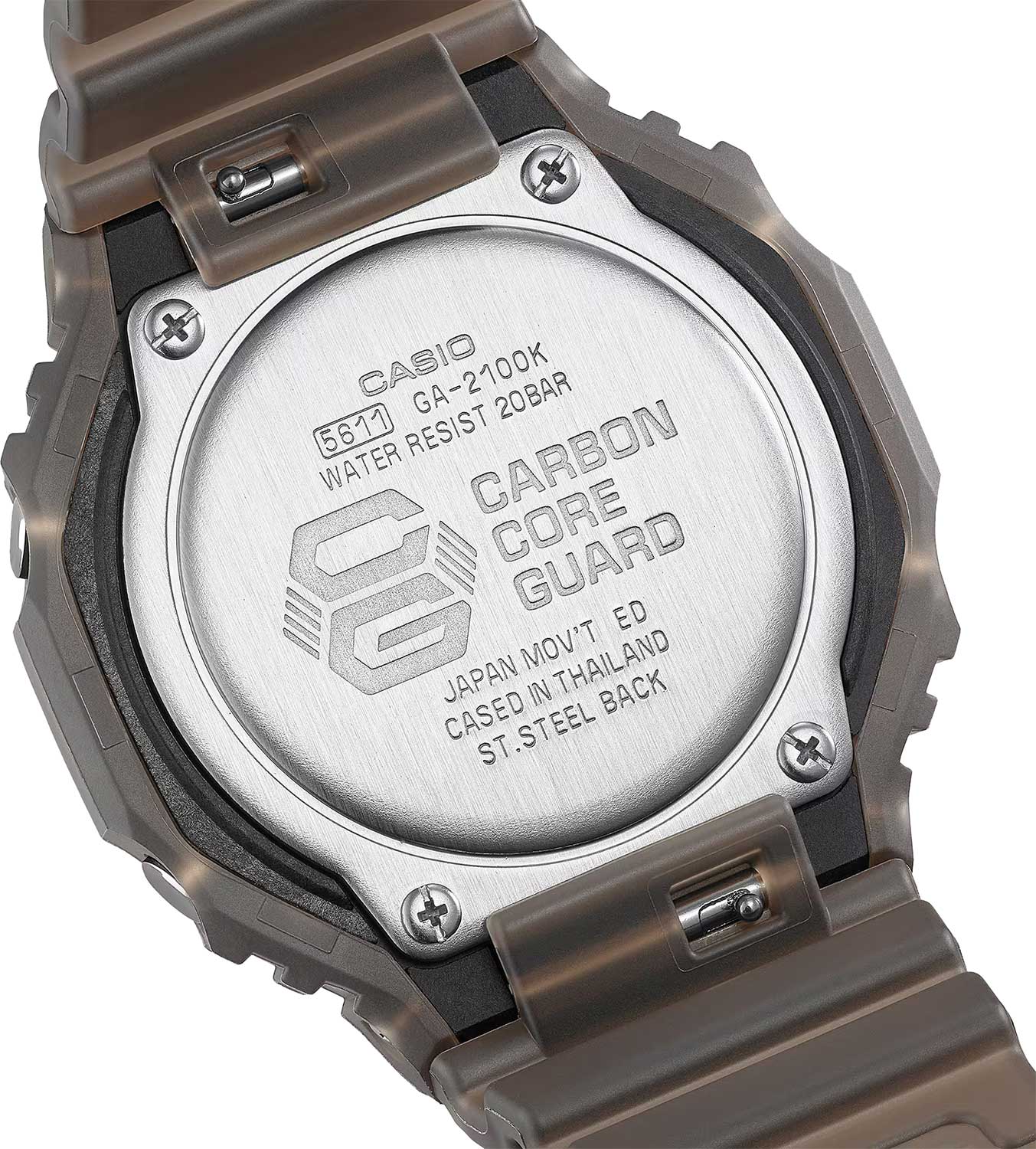 Корпус GA-2100 не только гармоничен и красив, но и невероятно надежен. За уникальную прочность отвечает особая конструкция и защита Carbon Core Guard