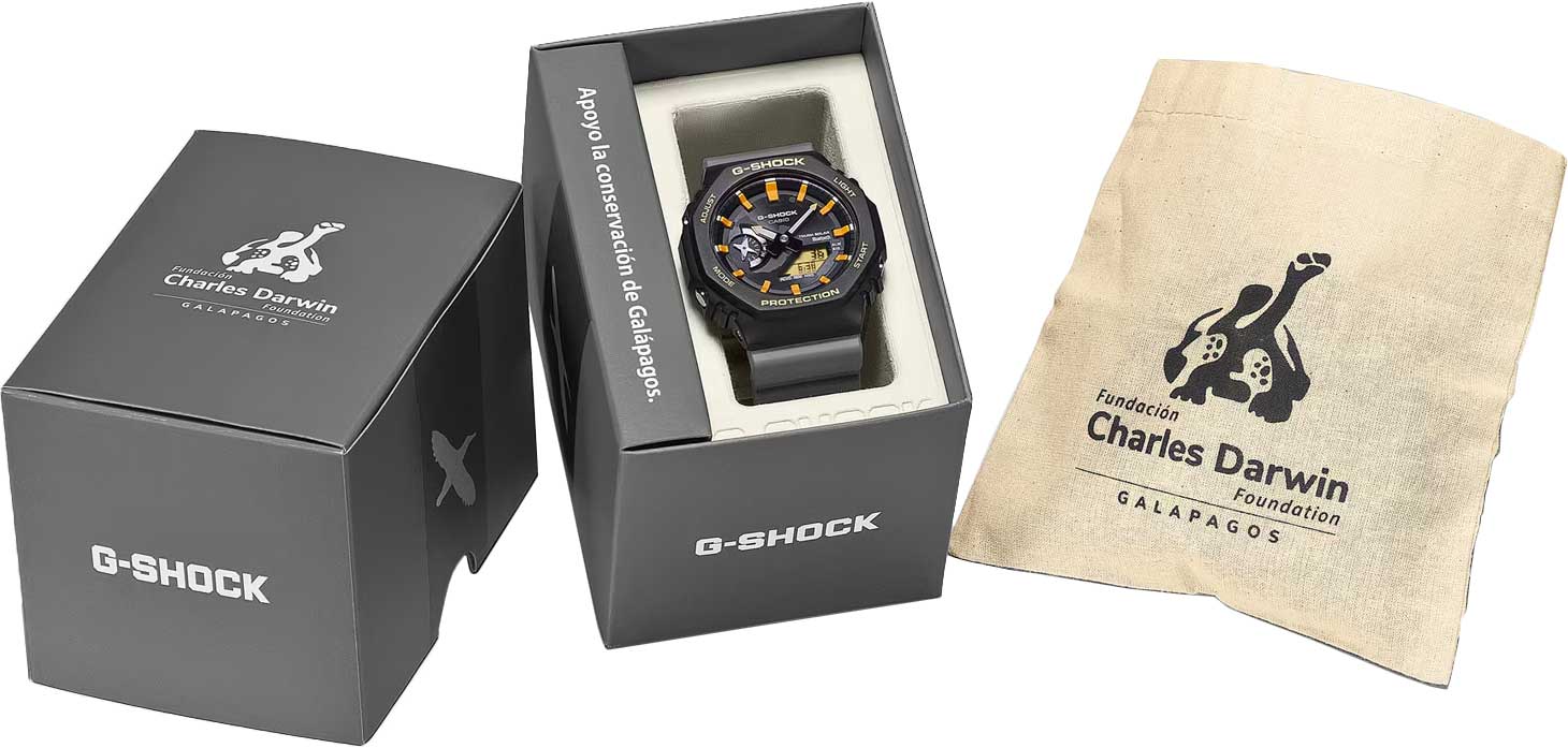 • Стальная задняя крышка крепится на 4-х винтах и украшена выгравированным логотипом Фонда Чарльза Дарвина.