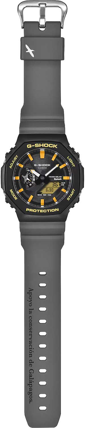 • Ремешок с классической застежкой и системой быстрой замены украшен надписью «Apoyo la conservacion de Galapagos» (Я поддерживаю сохранение Галапагосских островов).