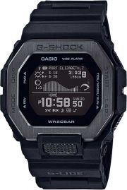 G-Lide. Часы с функцией виброоповещения создана для серфинга и экстремальных видов спорта. Противоударный корпус защищает механизм от ударов и вибрации. Светодиодная автоматическая супер-подсветка. При движении руки дисплей освещается ярким светом. Настраиваемое послесвечение 1,5 или 3сек. Цвет подсветки: белый. Дисплей mip LCD позволяет легко считывать данные даже в темноте. Отображение возраста и фазы Луны. Графическое отображение сведений о приливах и отливах на конкретную дату и время. Время восхода и захода Солнца. Указатель дневного света. 12-ти и 24-х часовой формат времени. Секундомер с точностью показаний 1с и временем измерения 100ч. SPLIT-хронограф. Возможность установить до 5 таймеров. Таймер обратного отсчета от 1сек до 1ч с автоповтором. Количество повторений таймера устанавливается от 1 до 20. Мировое время – 38 городов (38 часовых поясов), всемирное координированное время (UTC). Автоматический переход на зимнее и летнее время, возможность включения/отключения данной функции. Шагомер. Акселерометр. Функция тренировки отображает данные о расстоянии, скорости, темпе, количестве шагов, сожженных калорий (до 100 пробежек, до 140 кругов за одну пробежку). Управление данными журнала тренировок. Беспроводная технология Bluetooth® со сверхнизким потреблением энергии для синхронизации со смартфоном. При подключении к смартфону часы корректируют текущее время, дату и мировое время – 300 городов, а также включение/отключение летнего времени. Режим полета. С помощью специального приложения G-Shock Move можно легко установить информацию о приливах и отливах, а также время восхода/заката солнца примерно для 3300 точек по всему миру. Функции отключения/включения звука, виброоповещения, энергосбережения и поиска телефона. Стальной безель. Батарея рассчитана на 2 года. Водонепроницаемость 20 Бар в соответствии с ISO 2281. Стальная задняя крышка крепится на 4-х винтах. Ремешок из полимерного материала со специальными прорезями, которые улучшают прилегание к запястью и позволяют воде или поту легко выходить наружу. Классическая застежка.