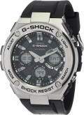 G-Steel. Питание от солнечной энергии Tough Solar - солнечные батарейки большой мощности, индикатор заряда батареи. Функция автоматического сохранения энергии. Время работы аккумулятора без подзарядки приблизительно 8 месяцев, при включенной функции сохранения энергии приблизительно 19 месяцев. Противоударный корпус защищает механизм от ударов и вибрации. Ударопрочный двухслойный корпус - между слоями металла, в качестве амортизирующей прокладки, выступает полимер. Двойная светодиодная подсветка Super Illuminator с функцией Afterglow (для подсветки не нужно удерживать кнопку, время послесвечения настраивается 1,5 или 3 сек): одновременно подсвечивается аналоговый циферблат и цифровой дисплей. При наклоне часов в сторону лица для считывания, функция автоподсветки обеспечивает автоматическое включение светодиодной подсветки. Цвет подсветки: белый. Светонакопительное покрытие Neobrite обеспечивает длительное послесвечение в темноте даже после кратковременного нахождения на свету. Мировое время – 48 городов (31 часовой пояс), всемирное координированное время (UTC). Функция включения/отключения летнего времени. 12-ти и 24-х часовой формат времени. Секундомер с точностью показаний 1/100 сек и временем измерения 1 ч. Сплит-хронограф. Таймер обратного отсчета от 1 сек до 100 мин. Функция перемещения стрелок. Функция отключения/включения звука. Удобный ремешок с классической застежкой.
