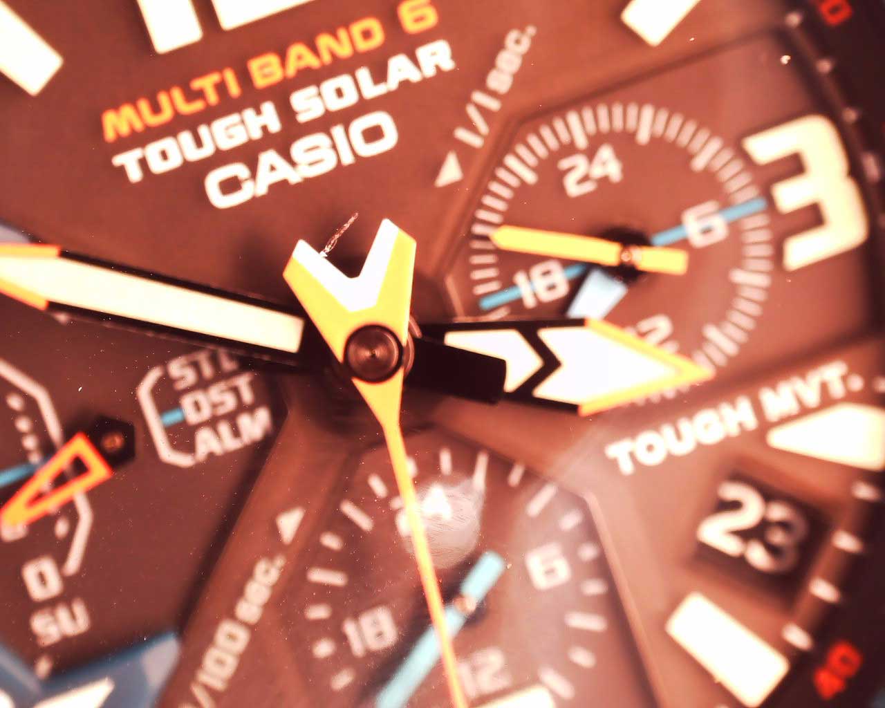 Aviation Gravitymaster. Новая серия часов для пилотов, механизм часов устойчив к перегрузкам до 15G. Питание от солнечной энергии Tough Solar - солнечные батарейки большой мощности, индикатор низкого заряда батареи. Функция автоматического сохранения энергии. Время работы аккумулятора без подзарядки до 5 месяцев, при включенной функции сохранения энергии до 26 месяцев. Противоударный корпус защищает механизм от ударов и вибрации. Светонакопительное покрытие необрит продолжает светиться в темноте даже после непродолжительного пребывания на свету. Технология Multi Band 6 позволяет принимать сигналы от шести радиовышек, расположенных в различных точках земного шара, которые передают временные сигналы от определенных атомных часов. Коррекция текущего времени радиосигналом на территории почти всей Европы, США, Японии и Китая. Функция автоматической коррекции положения стрелок проверяет положение стрелок каждый час и корректирует его в случае необходимости. Мировое время – 29 городов (29 часовых поясов), всемирное координированное время (UTC). Автоматический переход на зимнее и летнее время, возможность включения/отключения данной функции. 12-ти и 24-х часовой формат времени. Секундомер с точностью показаний 1/100с и временем измерения 24ч. Сплит-хронограф. Звуковой сигнал - в установленное время издается тональный сигнал.