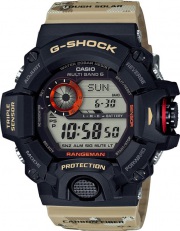 G-Shock представляет новые камуфляжные вариации для крупных и многофункциональных спортивных часов.Master of G Desert Rangeman. Питание от солнечной энергии Tough Solar - солнечные батарейки большой мощности, индикатор заряда батареи. Функция автоматического сохранения энергии (отключает LCD дисплей). Время работы аккумулятора без подзарядки до 8 месяцев, при включенной функции сохранения энергии до 23 месяцев. Противоударный корпус