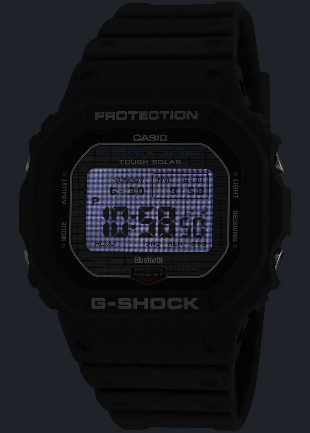 • Технология Multi Band 6 позволяет принимать сигналы от шести радиовышек, расположенных в различных точках земного шара, которые передают временные сигналы от определенных атомных часов. Коррекция текущего времени радиосигналом на территории почти всей Европы, США, Японии и Китая.