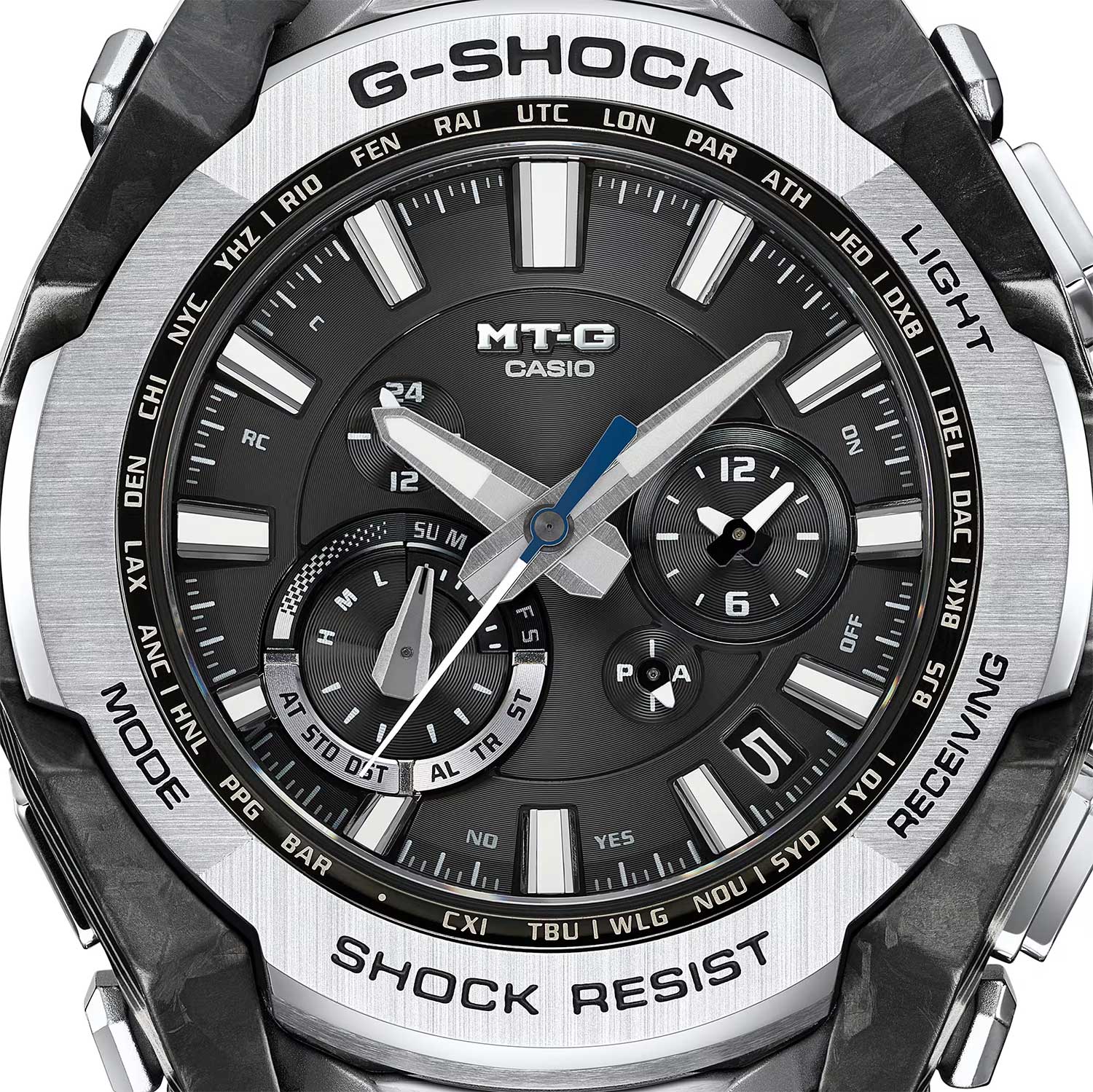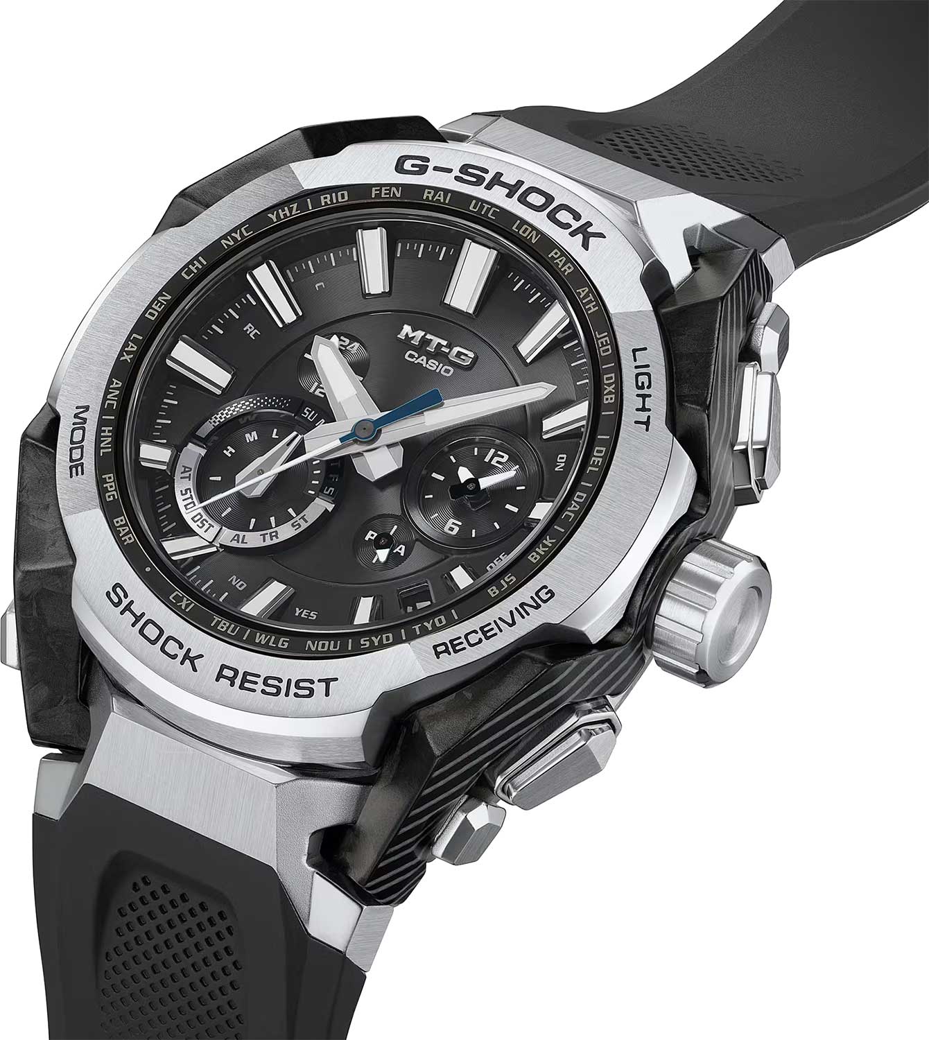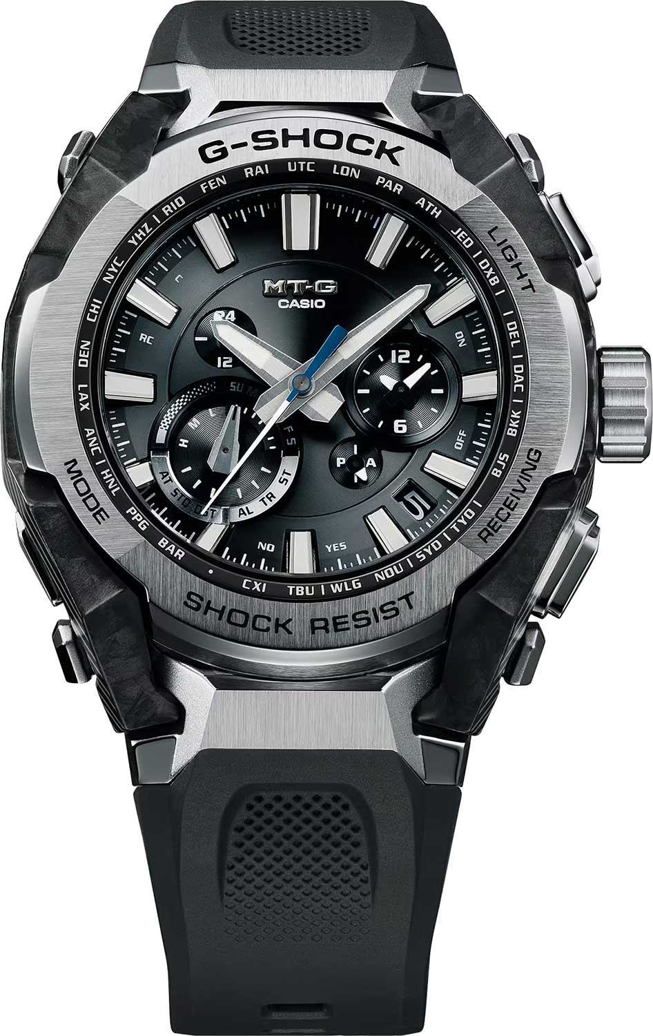 • Технология Multi Band 6 позволяет принимать сигналы от шести радиовышек, расположенных в различных точках земного шара, которые передают временные сигналы из определенных атомных часов. Коррекция текущего времени радиосигналом почти по всему миру: Англия, Германия, США, Япония и Китай.