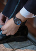 • Циферблат с метками в виде штрихов защищен прочным сапфировым стеклом.