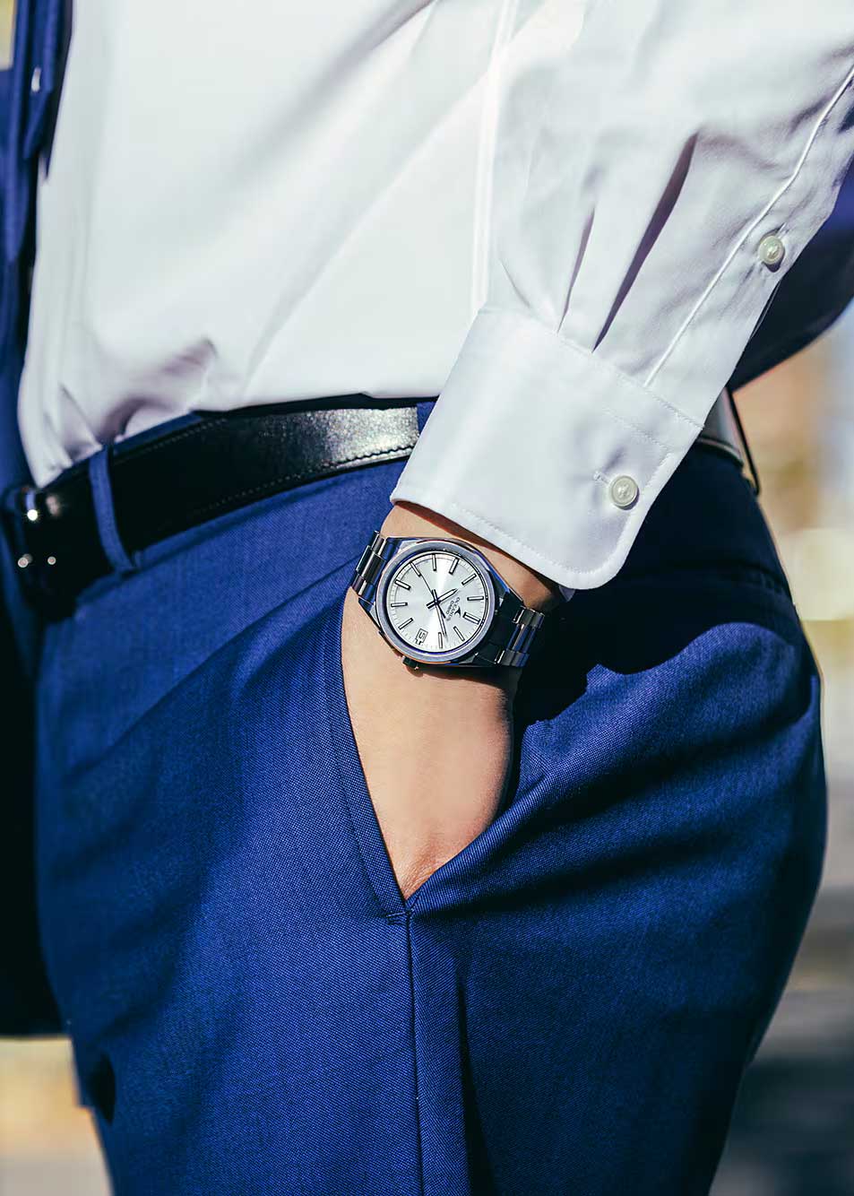 • Циферблат с метками в виде штрихов выполнен по технологии Sunray (солнечные лучи) и защищен прочным сапфировым стеклом.