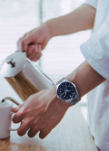 • Циферблат с метками в виде штрихов выполнен по технологии Sunray (солнечные лучи) и защищен прочным сапфировым стеклом.