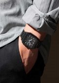 • Циферблат с метками в виде штрихов защищен прочным сапфировым стеклом.