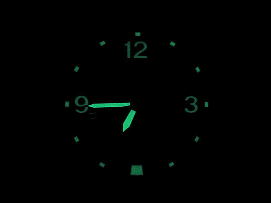 Необритовое светонакопительное покрытие стрелок или часовых меток обеспечивает длительное послесвечение в темноте даже после кратковременного нахождения на свету.