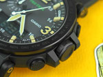 - измерение атмосферного давления от 260 до 1100 гПа (от 195 до 825 мм рт. ст.). Встроенный цифровой компас. Диапазон измерения от 0° до 359° с точностью 1°. Высотомер - встроенный датчик барометрического давления с возможностью вывода результатов в единицах высоты над уровнем моря (от -700 до 10000 метров). Хранение до 40 записей о высотных точках рельефа местности - измеренной абсолютной высоты, даты и времени. Система Smart Access с помощью электронной заводной головки обеспечивает простой и удобный доступ ко всем важным функциям часов. Нажатие или поворот заводной головки позволяет переключаться между различными режимами и активировать будильник, таймер, секундомер, а также настраивать функцию мирового времени. Секундомер с точностью показаний 1/100с и временем измерения 24ч. Сплит-хронограф.
