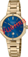 Sheen. Ультратонкие женские часы с восьмиугольным корпусом. Циферблат выполнен по технологии Sunray (солнечные лучи). Метки в виде штрихов. Окошко даты находится в положении 6 часов. Батарея рассчитана на 2 года. Литой браслет с тройной раскладывающейся застежкой, расстегиваемой одним касанием.