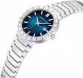 Прямоугольные стрелки в стиле Baton. Метки и стрелки с люминесцентным покрытием, которое светится в темноте после непродолжительной зарядки на свету. Окошко даты находится в положении 3 часа. Заводная головка в виде болта. Надежный стальной браслет с вертикальной матовой и полированной отделкой. Раскладывающаяся застежка.