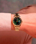 Окошко даты с увеличительным стеклом находится в положении 3 часа. Рифленая заводная головка. Надежный стальной браслет с матовой и полированной отделкой. Раскладывающаяся застежка.