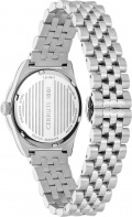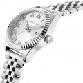 Прямоугольные стрелки в стиле Baton с люминесцентным покрытием, которое светится в темноте после непродолжительной зарядки на свету. Окошко даты находится в положении 3 часа. Рифленая заводная головка. Надежный стальной браслет с матовой и полированной отделкой. Раскладывающаяся застежка.