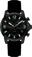 Метки и стрелки с люминесцентным покрытием, которое светится в темноте после непродолжительной зарядки на свету. Окошко даты находится в положении 4 часа. Рифленая заводная головка с защитой. Удобный кожаный ремешок с раскладывающейся застежкой.