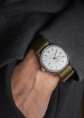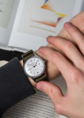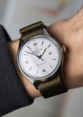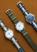 Метки и стрелки с люминесцентным покрытием, которое светится в темноте после непродолжительной зарядки на свету. Рифленая заводная головка. Прозрачная задняя крышка. Нейлоновый ремешок с классической застежкой.