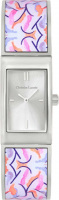 Женские наручные часы. Прямоугольный корпус из нержавеющей стали. Циферблат выполнен по технологии Sunray (солнечные лучи) и защищен минеральным стеклом. Метки в виде штрихов. Рифленая заводная головка. Стальной браслет с лакированным экзотическим цветочным принтом.