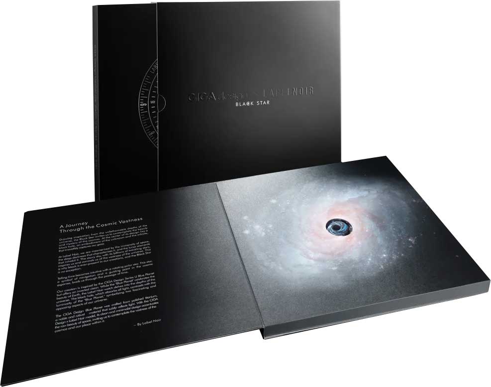 Центральная часть циферблата представляет собой куполообразную конструкцию с изображением вселенной, которую по центру украшает черная дыра, покрашенная уникальной черной краской способной поглощать 99% света. Вся эта секция вращается с течением времени.