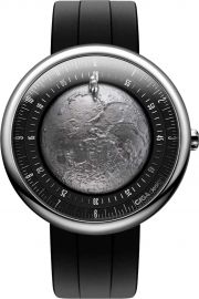 Центральная часть многослойного циферблата представляет собой куполообразную алюминиевую конструкцию с рельефным изображением обратной стороны Луны, которое выполнено с детальной точностью благодаря снимкам NASA. Также циферблат украшен легендарным первым следом Нила Армстронга на Луне и координатами где оставлен след. Вокруг Луны расположено вращающееся кольцо для минут и неподвижное кольцо для часов.