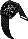 Цельная шкала циферблата на внутренней стороне корпуса. Ажурные стрелки с яркими акцентами. Прозрачная задняя крышка крепится на 4-х винтах. Заводная головка с защитой. Силиконовый ремешок с классической застежкой имеет функцию быстрой замены. В комплекте сменный кожаный ремешок. Фирменная подарочная упаковка.