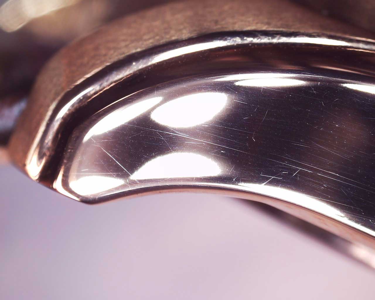 Циферблат выполнен по технологии Sunray (солнечные лучи) и защищен прочным сапфировым стеклом. Метки в виде штрихов. Окошко даты находится в положении 3 часа. Ретроградный указатель дня недели. Заводная головка с защитой. Ремешок с раскладывающейся застежкой.