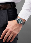 Текстурный циферблат с метками в виде штрихов защищен прочным сапфировым стеклом. Окошко даты и дня недели находится в положении 3 часа. Браслет с раскладывающейся застежкой.