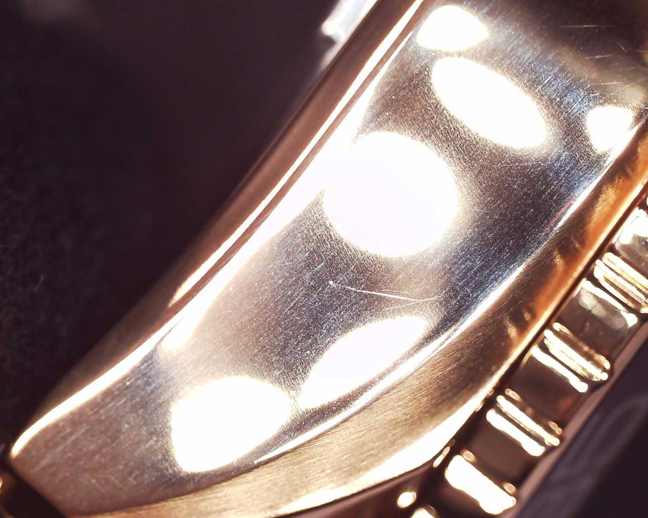 Циферблат с метками в виде штрихов выполнен по технологии Sunray (солнечные лучи). Окошко даты находится в положении 6 часов. Заводная головка с защитой находится в положении 4 часа. Браслет с раскладывающейся застежкой.