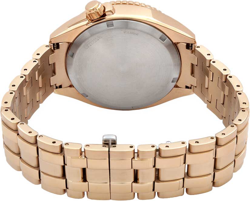 Циферблат с метками в виде штрихов выполнен по технологии Sunray (солнечные лучи). Окошко даты находится в положении 6 часов. Заводная головка с защитой находится в положении 4 часа. Браслет с раскладывающейся застежкой.
