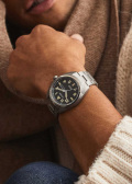 Циферблат с метками в виде штрихов и арабских цифр защищен прочным сапфировым стеклом. Окошко даты и дня недели находится в положении 3 часа. Браслет с раскладывающейся застежкой.