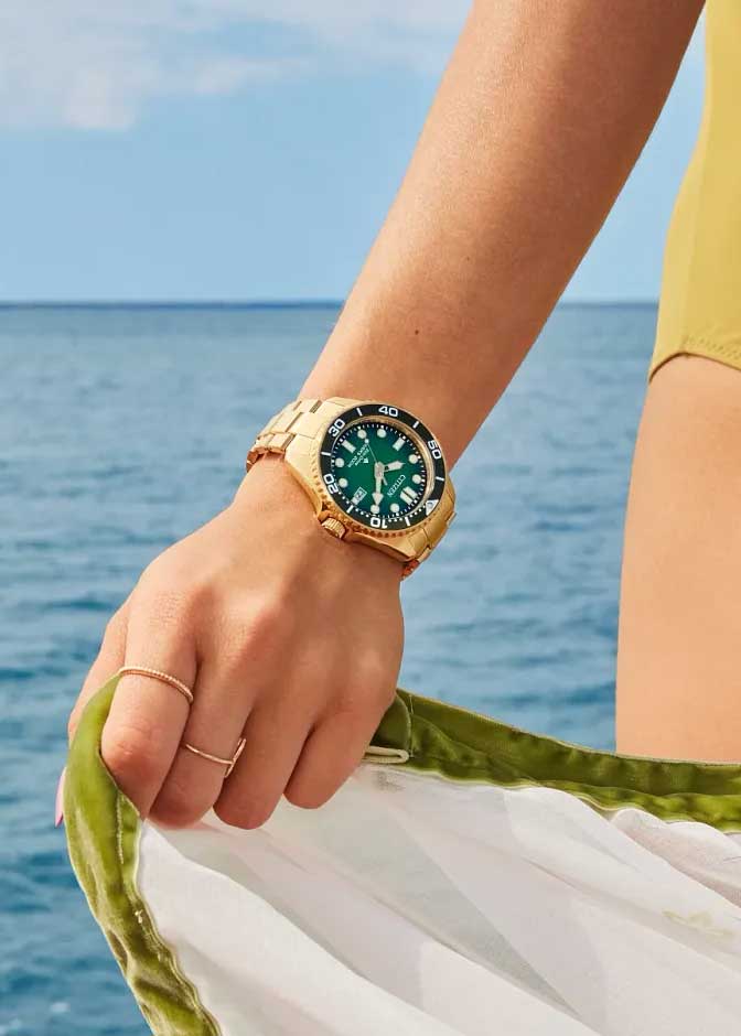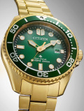 Безель вращается в одном направлении. Завинчивающаяся задняя крышка и заводная головка с защитой. Браслет с раскладывающейся застежкой. Застежка с системой блокировки.