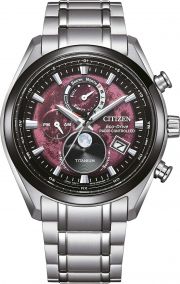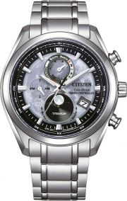 Tsuki-yomi AT. Мужские часы. Система Eco-Drive не требующая замены батарейки. Питание от солнечной энергии, запас энергии на 180 дней. Функции автоматического сохранения энергии, индикации заряда и предотвращения перезарядки. Защищены от магнитных полей. 12-ти и 24-х часовой формат